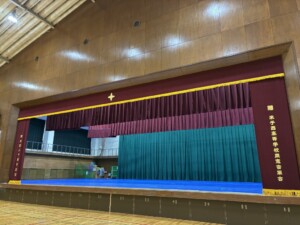120周年記念事業としてご寄付、またクラウドファンディングでご支援いただき、第二体育館に舞台幕を設置しています。